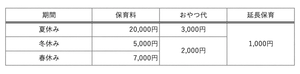 ※ 春休み短期利用で、3月のみ、または4月のみ利用される方の保育料は日割りになります。新1年生は4月からの利用になります。