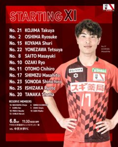 MF:8斎藤雅之 10尾﨑僚 11大友千裕 17清水雅仁 23園田新一郎 25石坂亮人