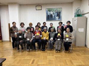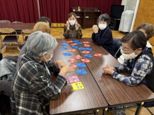 2025年1月8日(水)に刈谷市今川市民館にて認知症予防活動として懐話ふだを行いました。 フロントトスタッフが訪問してボールを使った脳トレなども行いました。 当日の様子 今後もホームタウン活動を通じて地域に健康と笑顔を届けていく活動を継続していきます。